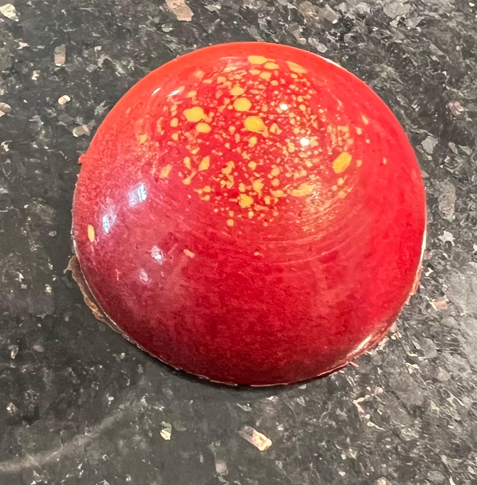 Peanut Butter Ganache and a Strawberry Gelee in a Dark Chocolate Shell